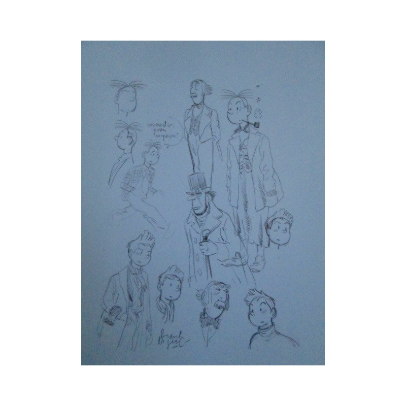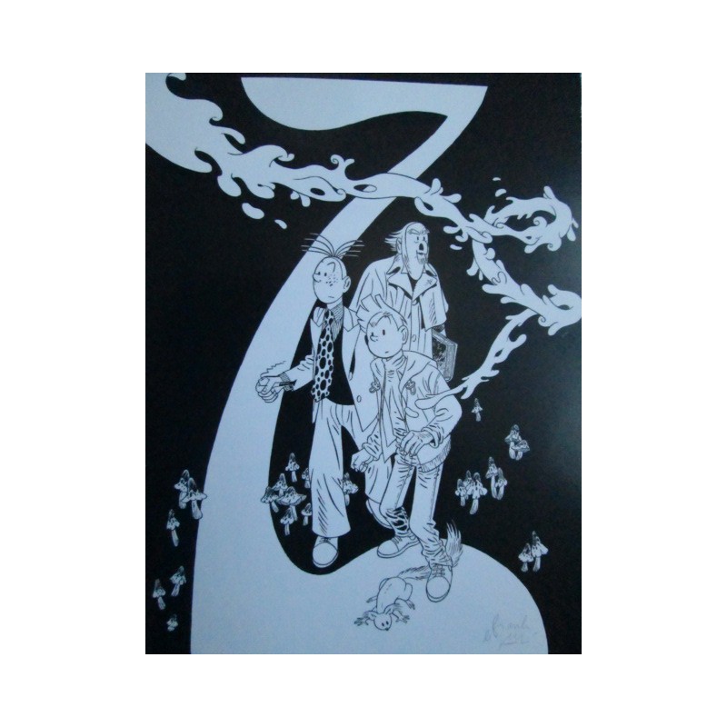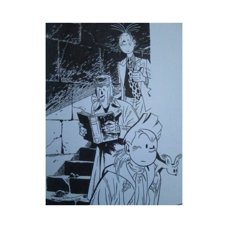Superbe catalogue de l'exposition Franck Legall, "Oeuvres sur papier", 2008, à la Galerie Thierry Goossens, édité à 50 exemplaires, signés et numérotés. on retrouve des visuels de l'album: "les Marais du Temps", excellente reprise de Spirou par Legall, éditions Dupuis, rare à la vente, à saisir!