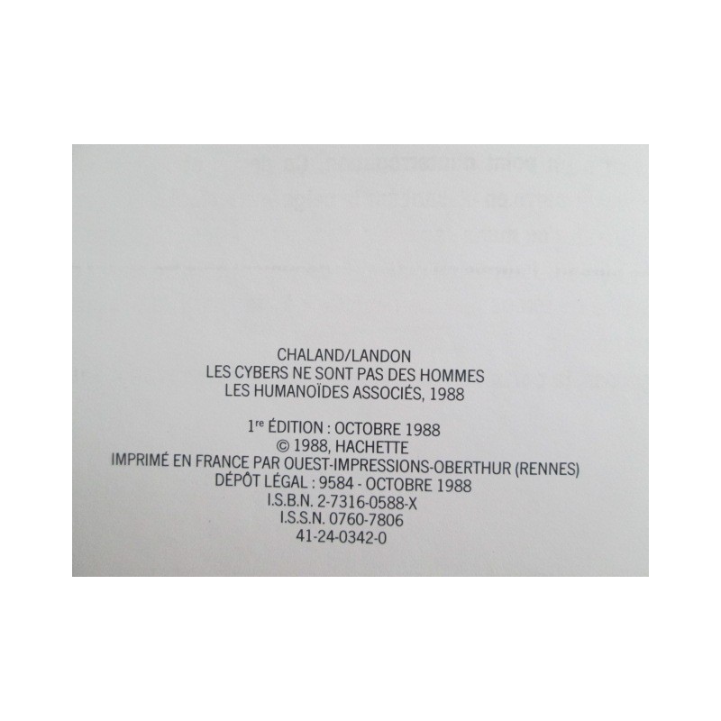 Les Cybers ne sont pas des Hommes, illustrations de Yves Chaland, Textes de François Landon, Les Humanoïdes Associés, collection Les Yeux de la Tête, édition originale, Dépôt légal: octobre 1988, Format à l'italienne, retrouvez ce Hors Série du fameux Bob Fish!